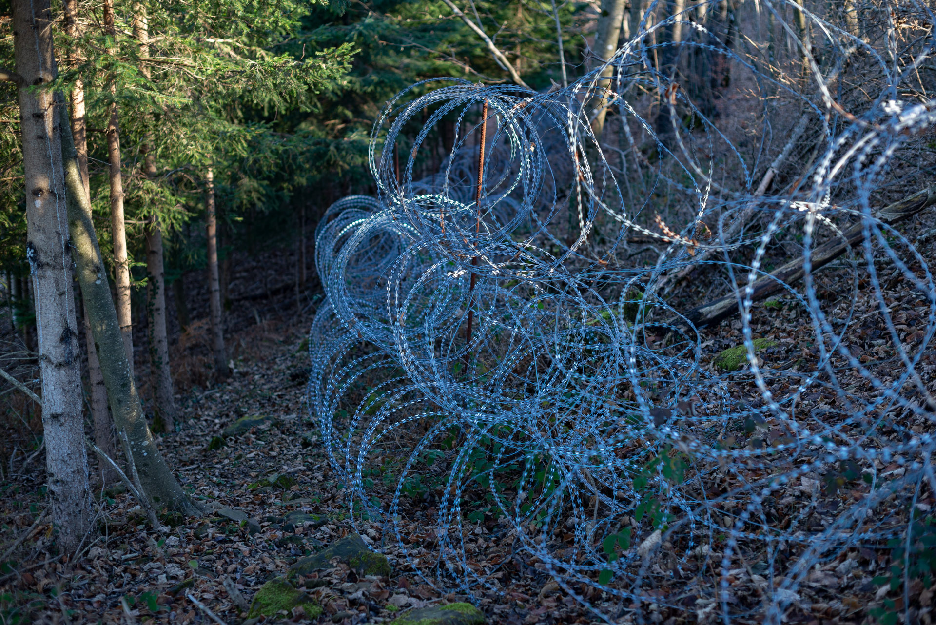 Veliko brdo. We meet the same soldiers again. Joke that we go for a drink for the 3rd time and ask where those fences are. At Veliki Brdo, there are some near someone's agricultural land. The razor wire is stretched. We also shoot by drone.