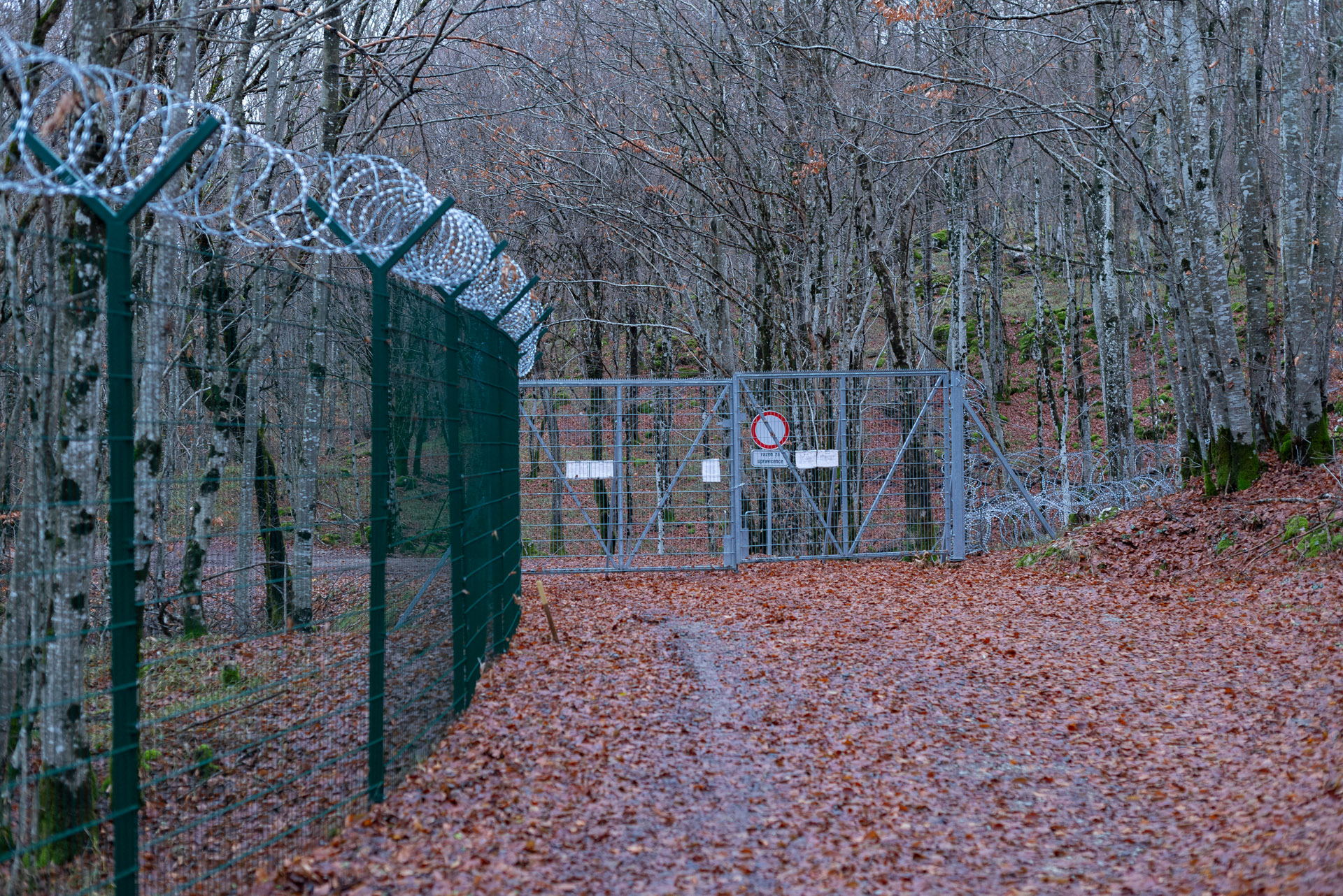 At Slavski Laz, the road goes away of the border, so we don't see if there are fences or not. When we get closser back to the border there are fences. It even collapses slightly on some places.
