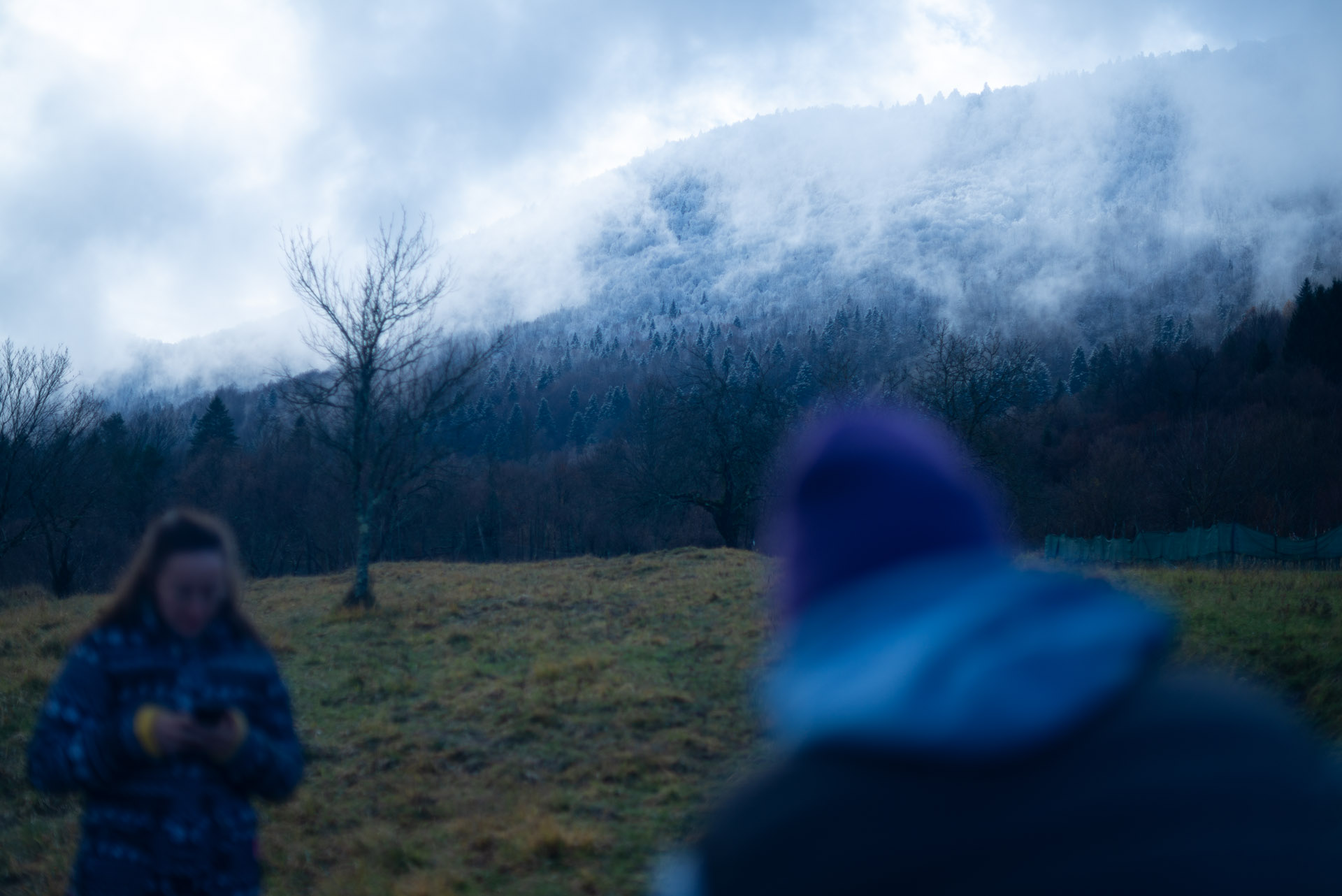 We stopped to record the landscape, the snow and the atmosphere. We take photos, audio and video recordings before the village of Marija Trošt and above the village of Gornji Turni in the forest.